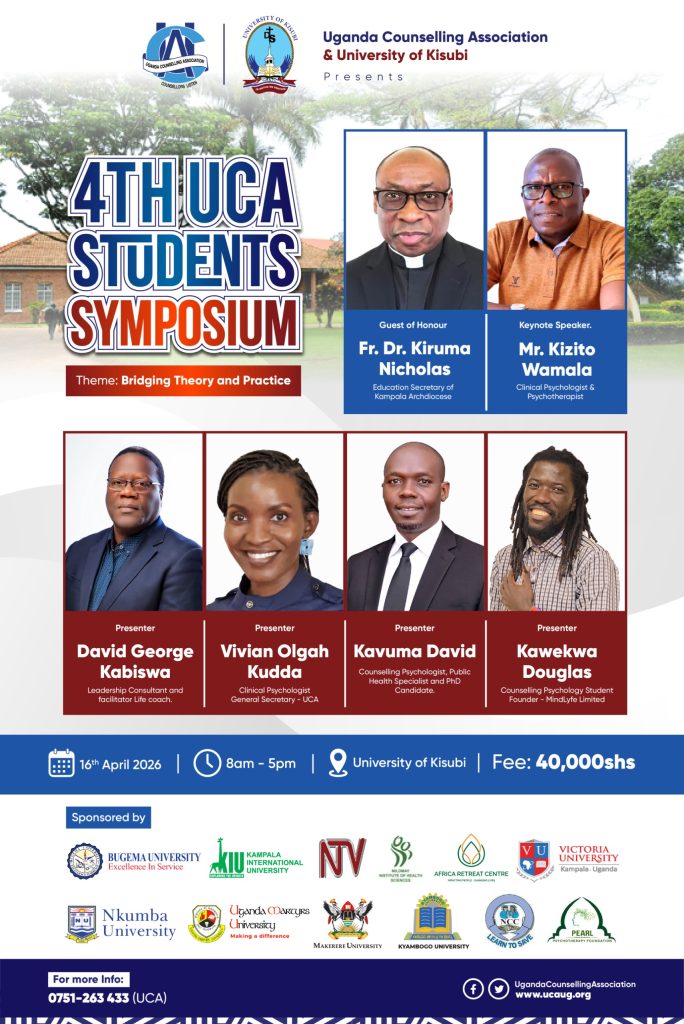 We’re set for the Symposium this Thursday, April 16, in Kisubi. Join our full lineup of presenters as they unpack Bridging Theory and Practice. Proudly made possible by our sponsoring partners and university partners.